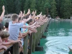 After the Hullaballoo your troop competes in a campwide race that involves running, speed walking, canoeing, and swimming. The winning troop earns the honor of throwing their favorite (or least favorite) staff member off the pier in full Class A uniform. Spend all week working on your baton and enter it in the baton carving competition.